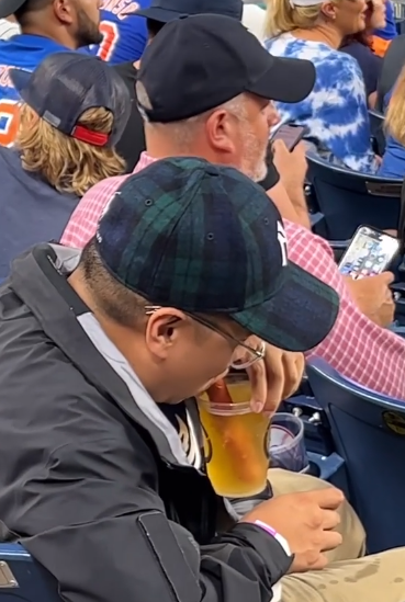 Considering the lack of production from Kyle Higashioka - spring training's Babe Ruth and the regular season's Ruth Buzzi - it might be fun to see Rortvedt at the MLB level. (Don't get me wrong: Not suggesting the Yankees drop Higgy. But if Trevino needed a two-week breather, we'd at least get to see what Benny's biceps have to offer. And he's supposed to be solid behind the plate.)3. Yank fans have always been elite influencers, godlike entities who stand as vanguards of major cultural movements. But last night, in a dizzying phone call that I'm not sure he'll remember, Alphonso followed up on the recent beer-straw-hot dog incident by vowing to drink his brewery nectar via a straw inserted into - gulp - a hamburger.