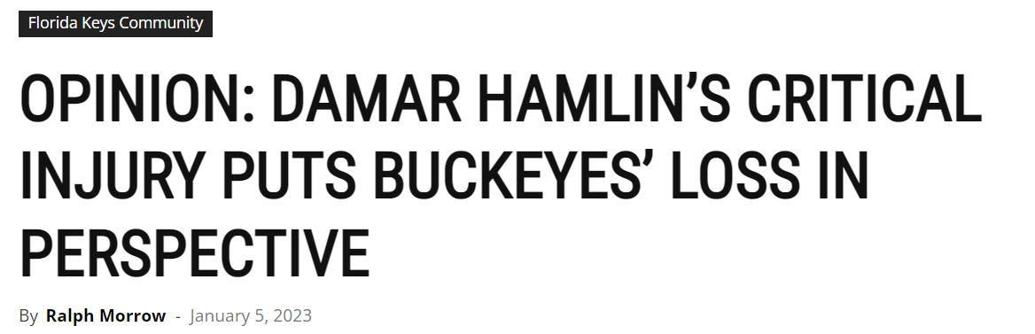 3. Finally - with all respect to the emotions of Damar Hamlin's recovery - the always screaming, rather soul-less U.S. media has dusted off the old trope about sports. This sure puts everything into perspective, Mel.