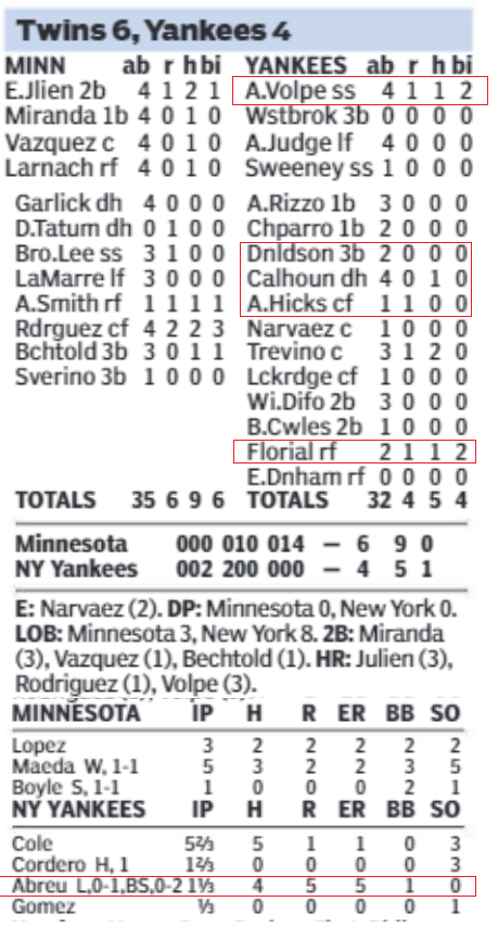 Nobody expects Judge to hit 60 HRs again, and the last month has derailed the notion of a powerhouse rotation and lockdown bullpen. (Check yesterday's line on Albert Abreu: Yikes!)